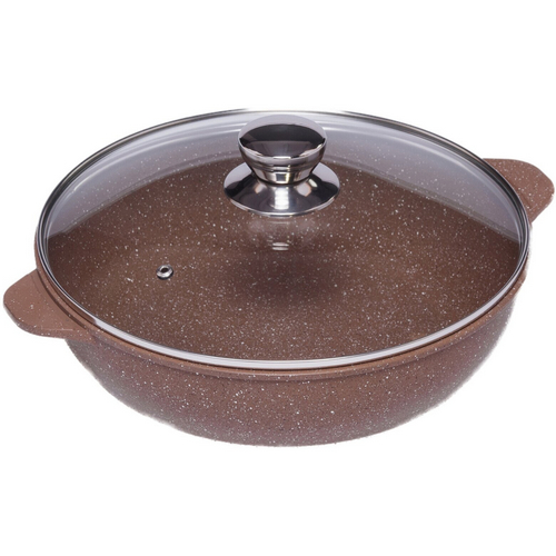 Жаровня оснащена удобными ручками, которые облегчают хват и позволяют комфортно удерживать ее в руках. Стеклянная крышка с пароотводом позволяет наблюдать за процессом приготовления, а также обеспечивает сохранность аромата и вкуса готового блюда.Купить жаровню с крышкой литую алюминиевую d32 h75мм