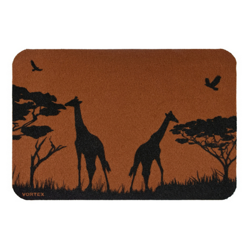 Очищает обувь от грязи и задерживает влагу при входе в помещение, не скользит. Способ нанесения рисунка трафаретная печать. Материал: ворс полиэстер, подложка ПВХ.Купить коврик придверный Vortex Саванна 24255 40*60см