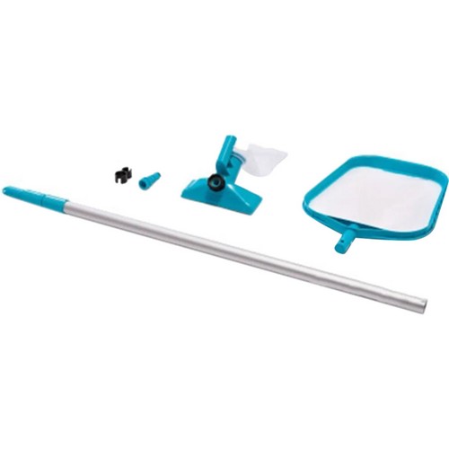 В набор входят: сачок для сбора мусора с поверхности водывакуумная насадка с многоразовым мешком для чистки дна бассейна. В насадку необходимо вставить садовый шланг (второй конец подключается к водопроводу или погружному насосу). На второе отверстие насадки одевается специальный мешочек для сбора мусора. Также крепится телескопическая ручка. Нужно погрузить насадку в воду и прижать ко дну, включить подачу воды и плавно, не поднимая насадку, направлять её по дну и собирать мусор. Струя воды проходит через насадку, меняя свое направление, попадает в мешочек, затягивает за собой мусор. Вода свободно проходит через пористый материал мешка, оставляя в нем грязь. Важно держать насадку вплотную ко дну бассейна.