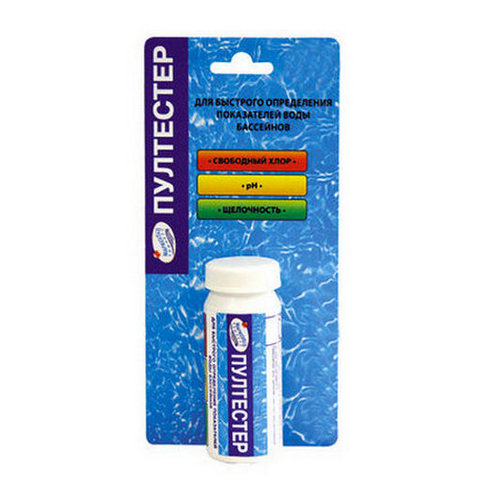 Пултестер - инструмент для быстрого определения показателей воды бассейнов (хлор, уровень рН, щёлочность).Количество тестирующих полосок: 20
