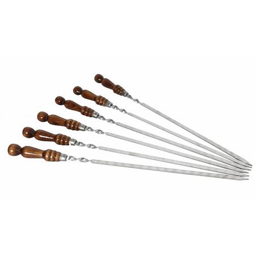 Шампуры имеют деревянные ручки, что обеспечит вамзащитуладонейи пальцев от нежелательного воздействия высоких температур.Лезвия шампуров изготовлены из нержавеющей стали, что делает их прочными и долговечными.