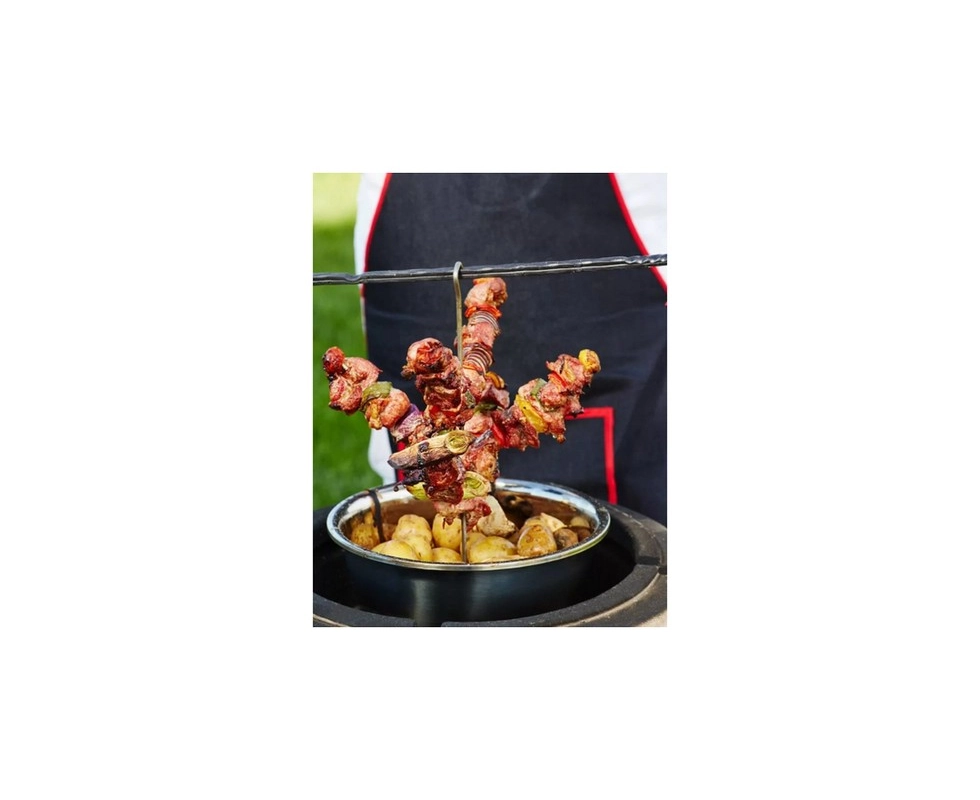 Эта модель елочки для тандыров выполнена из нержавеющей стали высшего качества. Она предназначена для приготовления как овощей, так и мяса в тандырах Сармат Восточный, Викинг, Атаман, Аладдин, Скиф. Чаша елочки собирает сок, который стекает с готовящихся блюд. Ее высокие стенки надежно защищают пищу от выпадения. На самих 6-ти шипах елочки можно расположить любые продукты, которые и наполнят своим соком блюдо из чаши.Материал: нержавеющая сталь