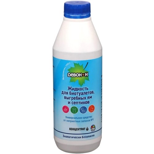 Средство Девон-Н - это универсальный уничтожитель запахов широкого спектра действия в виде жидкого концентрата. Жидкость ''Девон-Н'' быстро и эффективно устраняет запахи (фекальные, рвотные и пр.), не боится замерзания, не боится сливов моющих средств, способствует естественному биоразложению органических отходов с существенным уменьшением объёма. Хорошо разжижает фекальные массы в выгребных ямах и септиках.Основным компонентом жидкости является нитратный окислитель это обычное азотное удобрение, поэтому жидкость Девон-Н не содержит формальдегида, кислот, щелочей, четвертичных аммонийных соединений. Является экологически безопасной, поскольку все компоненты подвергаются биологическому разложению. Кроме того, жидкость Девон-Н нетоксична, не вызывает раздражения кожных покровов и слизистой, легко смывается водой. При применении Девон-Н все органические отходы, в том числе фекальные массы, можно использовать в качестве одного из компонентов для изготовления компоста.