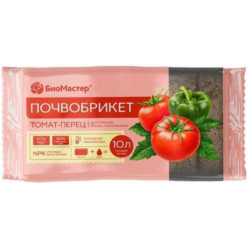 Почвобрикет БиоМастер ''Томат и перец'' - это высококачественный субстрат, который обеспечивает растениям наилучший старт для успешного роста и плодоношения. Структура почвосмеси обладает оптимальными физическими свойствами, которые полностью отвечают потребностям растений.Воздушный и влагоемкий грунт способствует быстрому развитию корневой системы и активизации роста. Сбалансированный комплекс питательных веществ с повышенным содержанием кальция позволяет вырастить красивые, вкусные и полезные плоды.