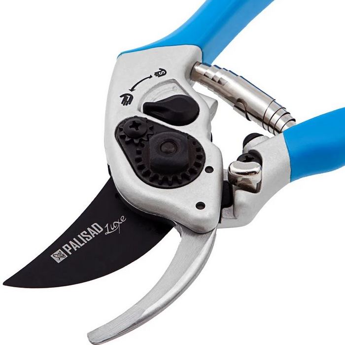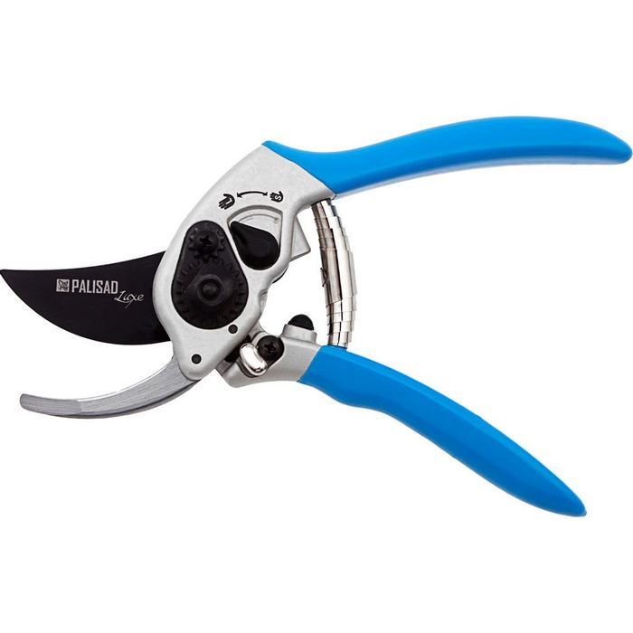 Секатор прямого реза Palisad LUXE 60470 длиной 210мм, с регулировкой захвата и алюминиевыми рукоятками, используется для обрезки живых веток диаметром до 22мм. Лезвия расположены в параллельных плоскостях, поэтому срез получается гладким и ровным, а потеря сока растением минимальна. Увеличенный шарнир повышает силу сжатия на 10%, что экономит силы пользователя. Секатор облегчает уход за растениями на загородном участке.Особенности - литой корпус, регулировка захвата.