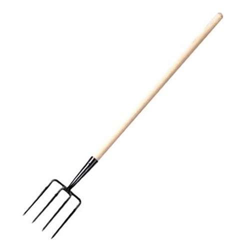 Вилы применяются для вскапывания и рыхления земли или компоста, для уборки урожая. Инструмент отличается высокой прочностью и имеет четыре зуба с плоским срезом.Материал: дерево, металл