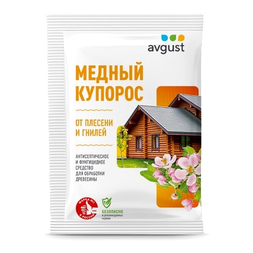Антисептическое и фунгицидное средство ''Медный купорос'' предназначено для обработки древесины с целью борьбы с плесенью и гнилями. В строительстве водный раствор сульфата меди применяется для нейтрализации последствий протечек, ликвидации пятен ржавчины, а также для удаления выделений солей (''высолов'') с кирпичных, бетонных и оштукатуренных стен.Купить антисептик Медный купорос 100 гр