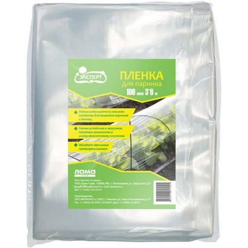 Укрывной материал пленка 100мкм 3x6м Эксперт - используется в сельском хозяйстве для покрытия парников и теплиц. Устойчива к нагрузкам, погодным изменениям и ультрафиолетовому излучению.Тип: пленка