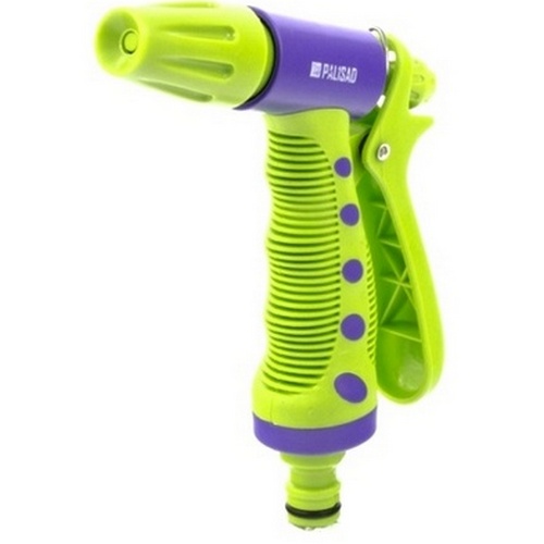 Пистолет-распылитель со штуцерной посадкой и удобным курком, расположенным сзади. Оснащен регулируемой форсункой, что обеспечивает три режима полива: жесткую струю, распыление типа туман, конусное распыление. Имеет фиксатор курка для непрерывной работы.Предназначен для полива на дачных участках, в садах, парках и скверах, а также для очистки. Совместим со всеми элементами системы полива Palisad и Palisad Luxe.