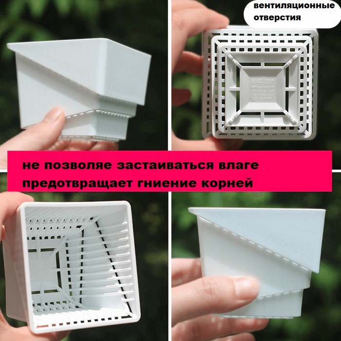 Миниатюрные розы, кактусы, сенполии и другие комнатные растения небольшого размера будут чувствовать себя прекрасно в вазонах Botanica Air, уникальная конструкция которых предусматривает своевременный отток лишней влаги из субстрата, питание корневой системой кислородом и правильное развитие и рост.Горшки снабжены тремя рядам отверстий расположенных по всему периметру и нижним дренажом, благодаря чему исключается загнивание корней. Кроме отверстий на внутренней поверхности вазонов имеются вертикальные выступающие ребра слоты, при помощи которых корни растения развиваются в нужном направлении, не скручиваясь в один комок.