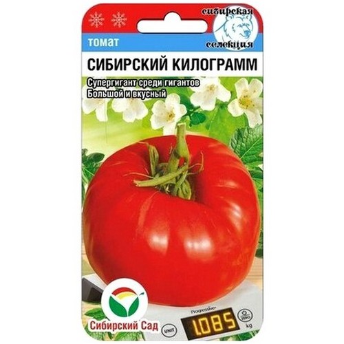 Среднеспелый (116-120 дней) сорт супергигант сибирской селекции. Лидер по крупноплодности и урожайности среди томатов-великанов. Характеризуется устойчивостью к температурным колебаниям, комплексу основных заболеваний, прекрасным товарным видом и дегустационной оценкой вкуса плодов 5 баллов. При соблюдении агротехники не трудно получить томаты по 1000 и более граммов, состоящие из сплошной сладкой мякоти.Растение мощное, высотой 1,8-2м. В кисти формируется 3-4 крупных округлых плода, средней массой 600-800г. Томаты быстро набирают массу, вес первых плодов достигает более 1 ( до 1,5)кг . Насыщено-красные, без зеленого пятная у плодоножки, мясистые , не склонные к растрескиванию гиганты имеют отличный товарный вид для рыночных продаж. Сахаристая сладкая мякоть с минимальным количеством семян идеальна для приготовления салатов, соков, пюре и томатопродуктов. С каждого растения можно получить до 5 кг товарных плодов.