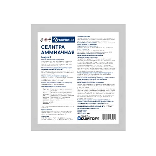Аммиачная селитра содержит азот в двух формах (не менее 34% азота) быстродействующей нитратной форме и медленной аммонийной. Поэтому удобрение можно применять как при посеве (работает по холодной земле), так и для подкормки. Наличие азота в аммонийной форме медленного действиягарантирует длительную доступность азота для растений, что особенно важно для культур с длинным вегетационным периодом. Поскольку это удобрение хорошо растворимо, его можно использовать и для фертигации как самостоятельно, так и в водном растворе с другими удобрениями. Селитра стимулирует рост растений, повышает урожайность и стойкость