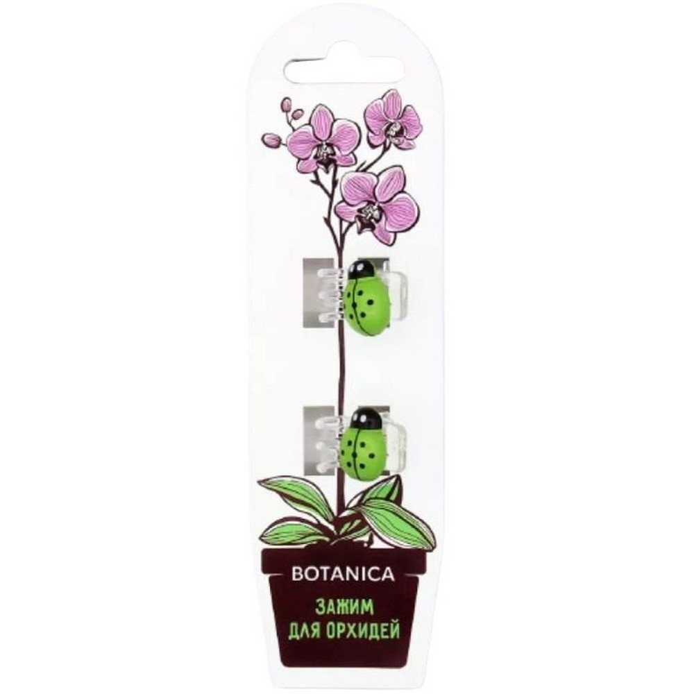 Зажим для орхидей Божья коровка зеленая упаковка 2шт