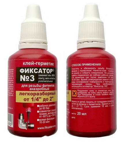 Анаэробный клей-герметик Фиксатор 3 предназначен для уплотнения резьбовых соединений и является достойной альтернативой стандартным материалам ФУМ-ленте льну и т.д. Допущен к применению в системах питьевого водоснабжения.Преимущества: