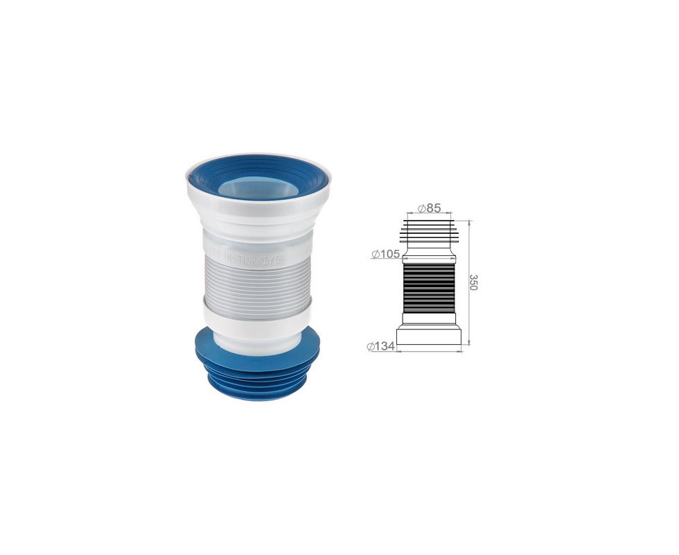 Гофра для выпуска унитаза, армированная, предназначена для отвода фекалий из унитаза в канализацию.Благодаря своей гибкости и эластичности гофра для унитаза позволяет смонтировать унитаз в удобномдля вас месте и с разным удалением от канализационного стояка.