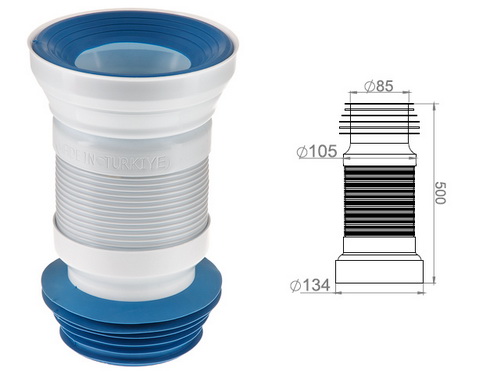 Гофра для выпуска унитаза, армированная, предназначена для отвода фекалий из унитаза в канализацию.Благодаря своей гибкости и эластичности гофра для унитаза позволяет смонтировать унитаз в удобномдля вас месте и с разным удалением от канализационного стояка.