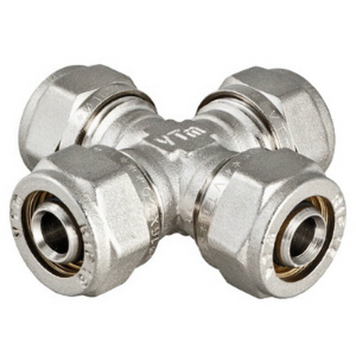 Характеристики:Латунный никелированный фитинг предназначен для соединения четырех равнопроходных металлополимерных труб.