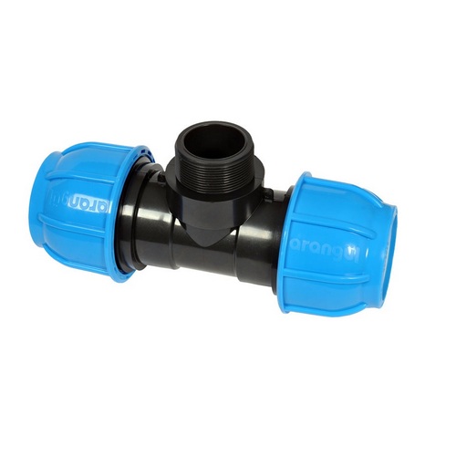 Тройник компрессионный зажимной комбинированный применяется для соединения двух полиэтиленовых труб низкого давления с переходом на резьбовое соединение. Используется в наружных и внутренних системах холодного водоснабжения.Купить тройник 25*3/4'' нар.р. ПНД Arangul