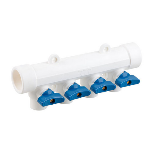 Купить Коллектор с шаровым краном синий PPR 32х20/4 белый RTP 28204Заказать Коллектор с шаровым краном синий PPR 32х20/4 белый RTP 28204