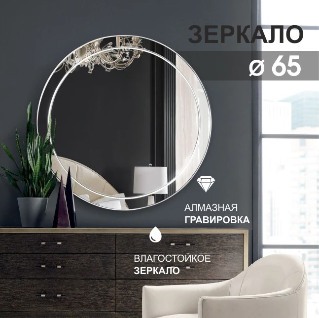 Зеркало Алмаз-Люкс круглое с полированной кромкой и гравировкой 65 см