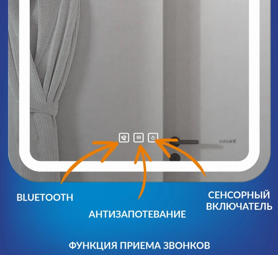 Зеркало с Bluetooth способно принимать звонки и воспроизводить любимые треки с телефона. Так процедуры в ванной комнате становятся ещё более комфортными и приятными.